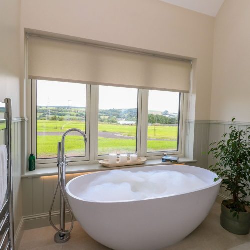 The king-size room has the luxury of an en-suite with sleek walk-in shower ensuring you can get ready for the day in style, while the main bathroom has an enclosed shower and boasts a beautiful freestanding bath which can be closed off from the main bathroom creating a secluded bathing room to ensure an undisturbed indulgent soak.