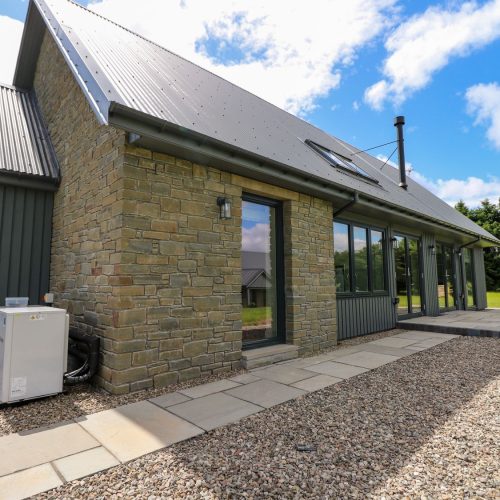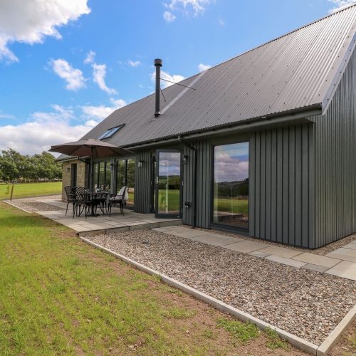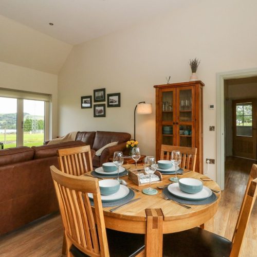 This beautifully-presented, detached Lodge Retreat is tucked away on a farm in rural Wester Essendy, near Dunkeld, Perthshire. With a toasty wood burning stove, a contemporary open-plan living space, and loch views, this dog-friendly haven invites families and friends, idyllic for an escape to the picturesque countryside of Scotland.