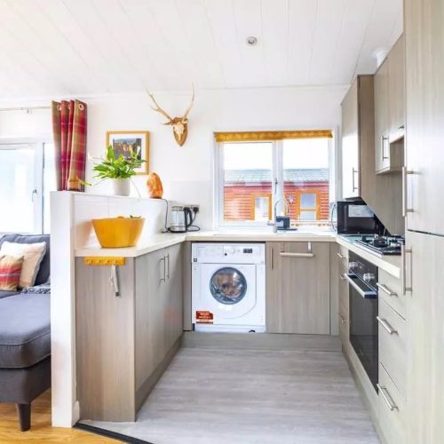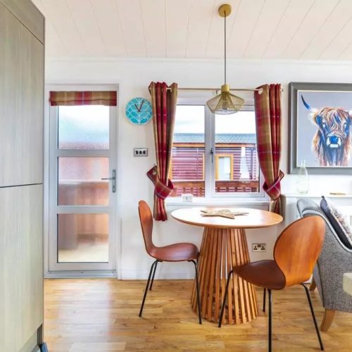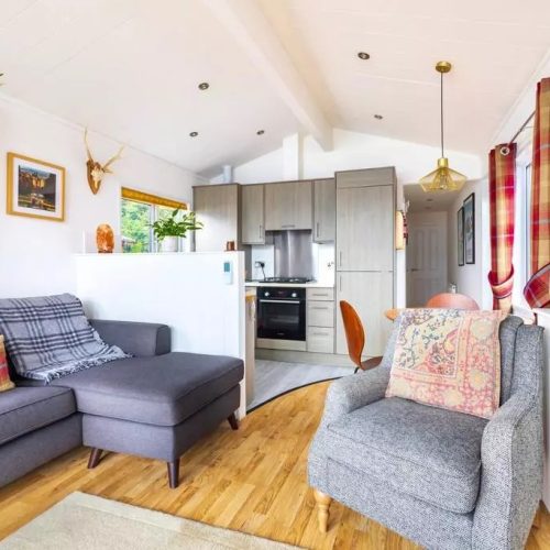 This stylish and modern lodge has a bright open-plan living area with dual-aspect windows and French doors framing picture-perfect views of Loch Ness – pretty hard to beat. The lounge, dining and kitchen areas are bathed in natural light, and the kitchen is fully equipped with top-of-the-range appliances. After a day absorbing the beauty of the Highlands, retreat to the double bedroom which benefits from a walk in shower room.