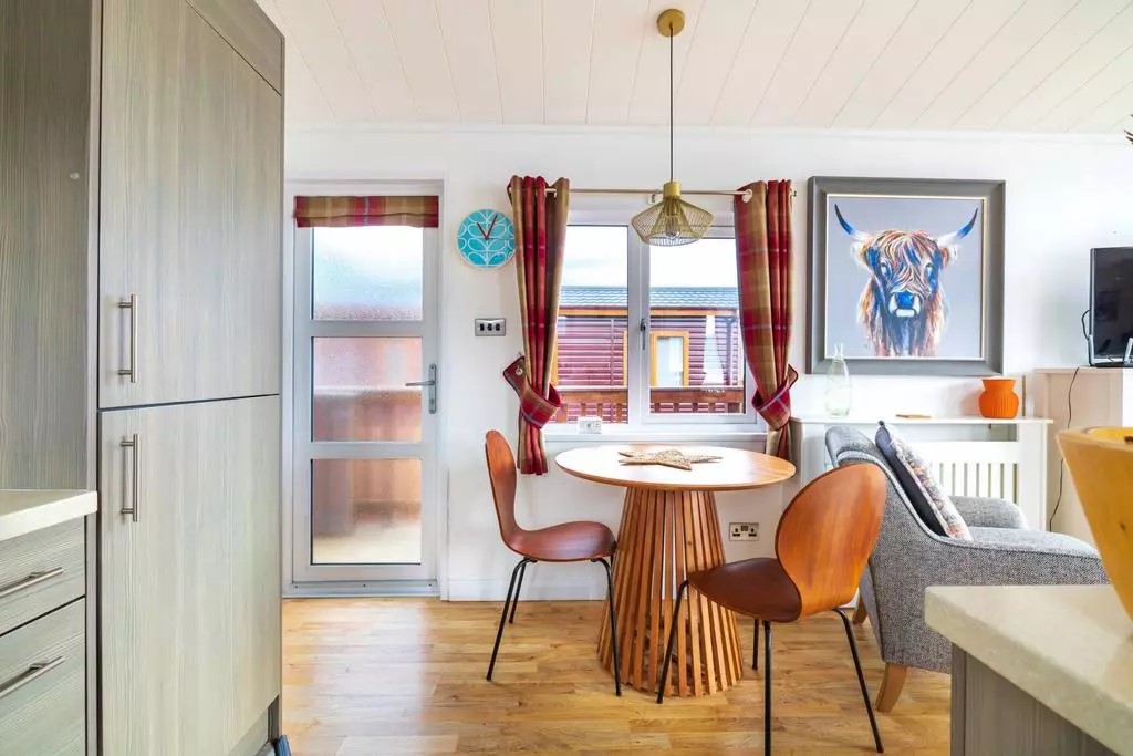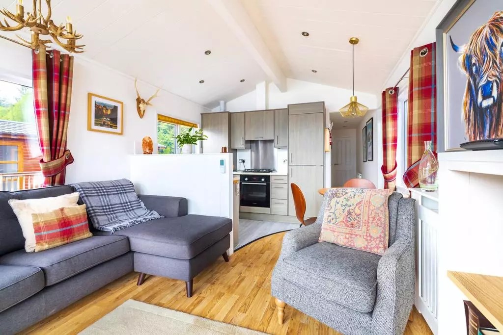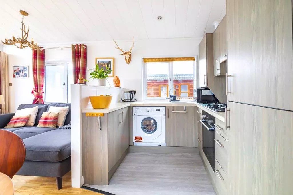 This stylish and modern lodge has a bright open-plan living area with dual-aspect windows and French doors framing picture-perfect views of Loch Ness – pretty hard to beat. The lounge, dining and kitchen areas are bathed in natural light, and the kitchen is fully equipped with top-of-the-range appliances. After a day absorbing the beauty of the Highlands, retreat to the double bedroom which benefits from a walk in shower room.