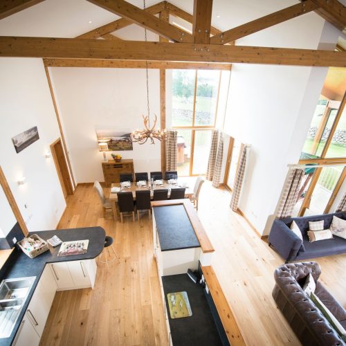Offering a rural Lodge holiday close to Fort William with a real wow factor, this American log house is situated in an elevated position on a Farm, with spectacular views of Ben Nevis.