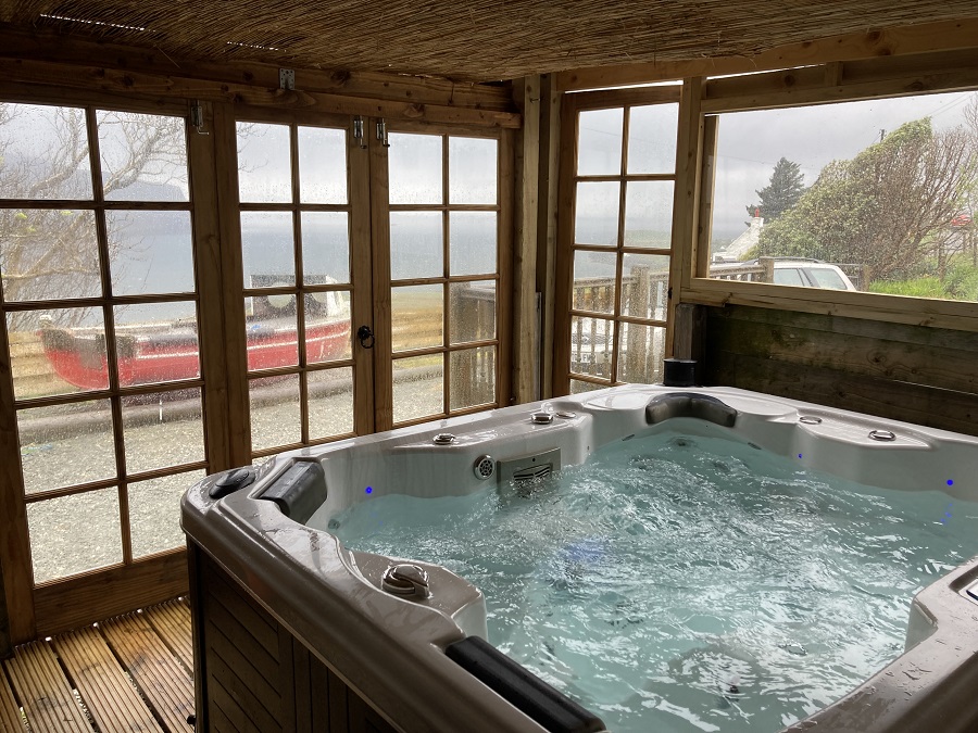 Isle of Skye – This cosy detached coastal Hot Tub Retreat offers a Romantic retreat with the most stunning sea views from its private Hot Tub (now covered) and Conservatory on the magical Isle of Skye. Originally built to house a family of crofters this cottage has been sympathetically restored to reflect both its heritage and nautical outlook, with all modern self catering refinement including bespoke kitchen, electric storage heating, Satelite TV, Jacuzzi bathroom and a homely Wood Stove. Sleeps 5 Pets Welcome