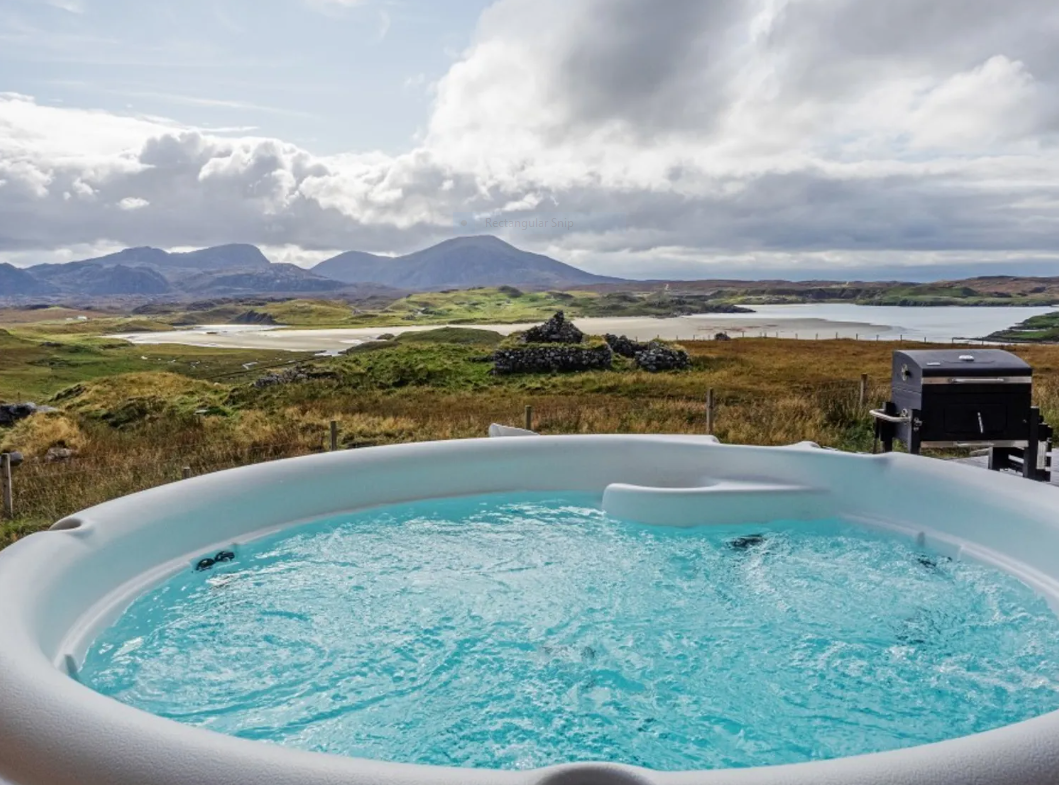 Lewis Outer Hebrides – This stunning remote Hot Tub Hideaway is virtually on the Beach enjoying an elevated position above Uig Sands on the Isle of Lewis in the heart of the Outer Hebrides, Lewis Lodge is a large, extremely well-presented holiday home. Easily sleeping 10 people, the property is perfect for large family gatherings. Sleeps 10, Pets Welcome