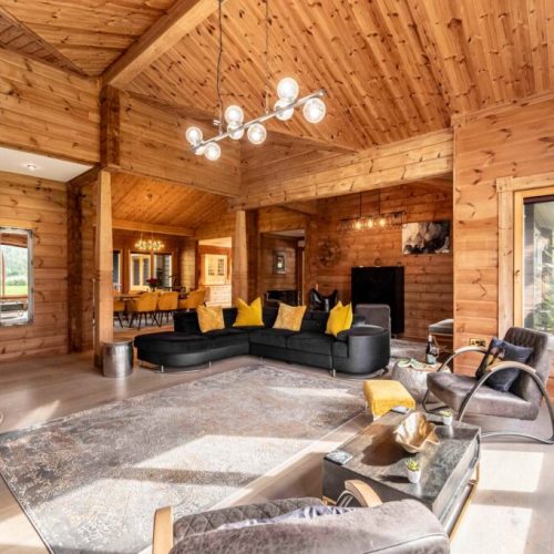 Offering a rural Lodge holiday close to Fort William with a real wow factor, this American log house is situated in an elevated position on a Farm, with spectacular views of Ben Nevis.