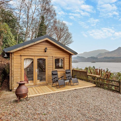 Enjoy a romantic getaway to this charming log cabin, relax and unwind in the private, sheltered yet open fronted hot tub and enjoy the spectacular views over Loch Earn, in this truly idyllic location