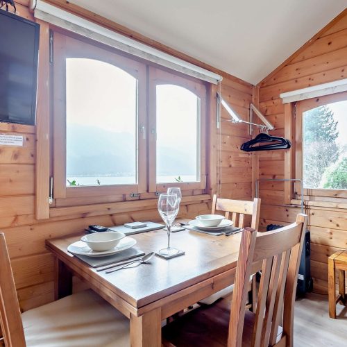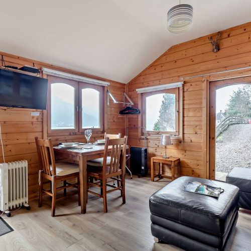 Venturing onto the decked area, you are met with this charming and stylish log cabin. Step inside the lodge and head through to the light and bright open-plan lounge/kitchen/diner, with amazing views over Loch Earn and the surrounding mountains. The well-equipped kitchen area is the perfect place to cook up a storm with electric oven and hob, microwave and fridge/freezer. The lounge area has a large comfy sofa where you can relax after a day out exploring the beautiful local area and perhaps enjoy a great movie or catch up with your favourite program on the TV/DVD, or just relax and admire the amazing views. Next is the dining area, the ideal spot to enjoy romantic meals together with French doors leading directly outside. To the rear of the lodge is the lovely comfy double bedroom, where you can relax and enjoy the immediate splendid views, with en-suite shower room with shower and WC.