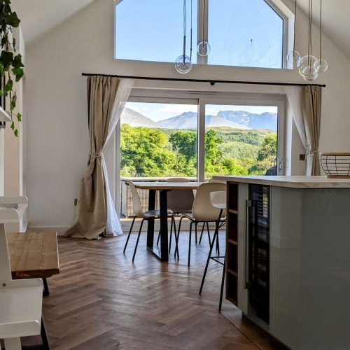 This fantastic newly built eco house completed in 2023 with outstanding interiors featuring high, vaulted ceilings, large windows that allow in waves of natural light, and living spaces completed to the highest of standards, this amazing property welcomes a family or a group of eight, along with a well-behaved canine companion, to enjoy a remarkable escape within one of Scotland’s most beautiful landscapes.