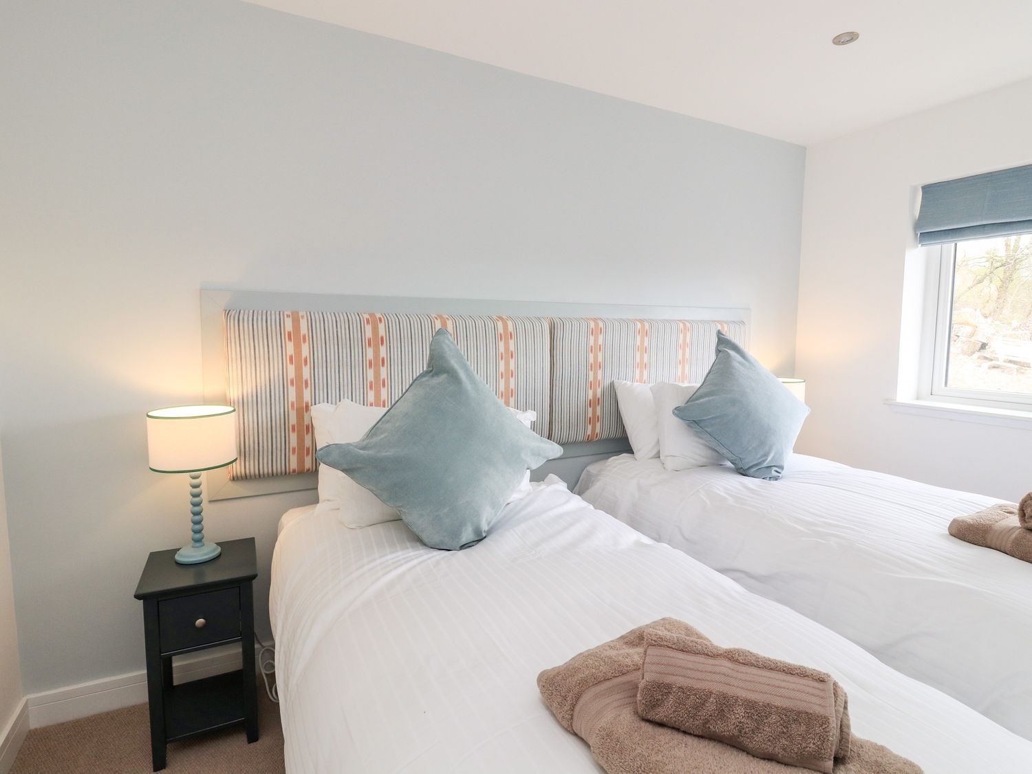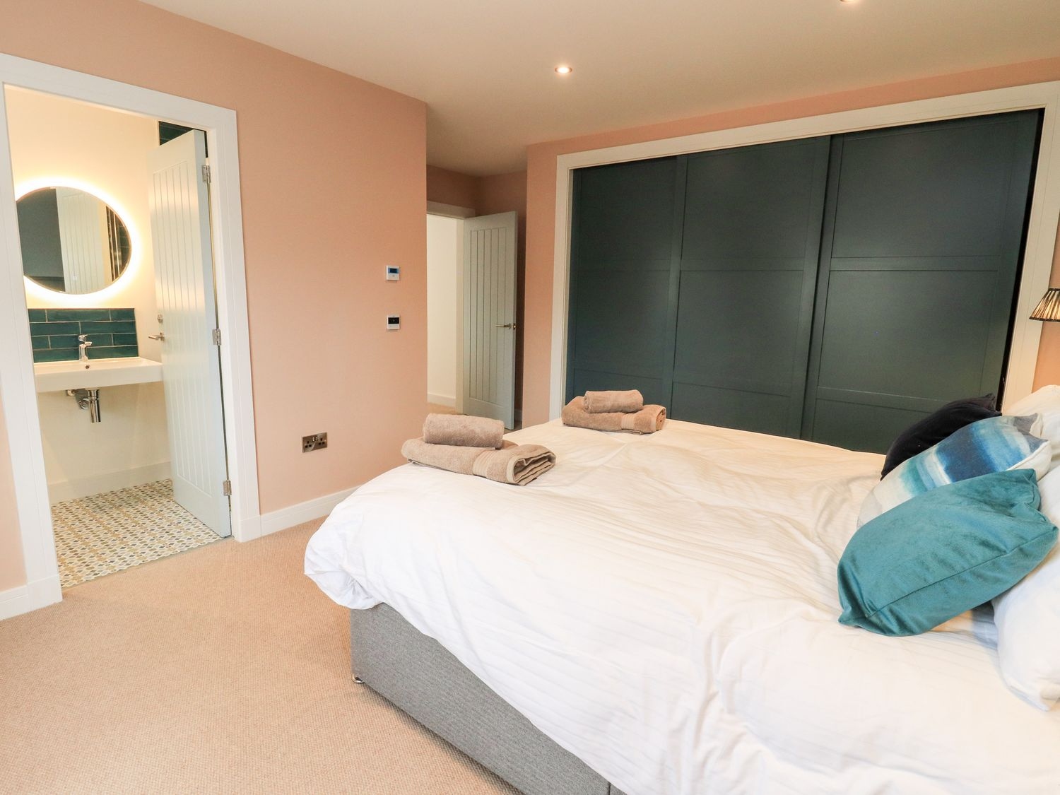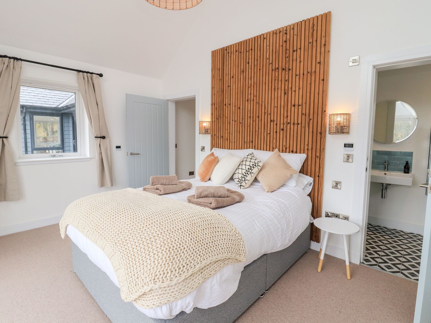 - Four bedrooms: 2 x king-size with en-suite walk-in shower, basin, heated towel rail and WC, 2 x twin (can be king on request)