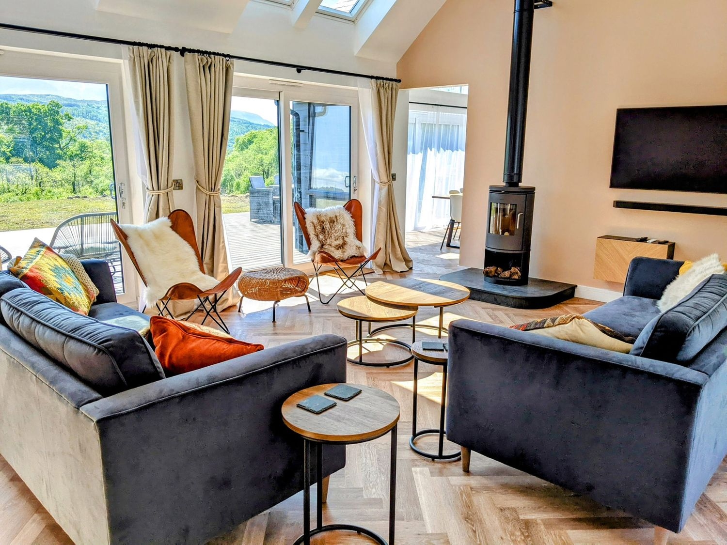 When you want to relax, kick back and enjoy a film in front of the wood burning stove on the sleek, wall-mounted Smart TV in the impressive sitting room.
