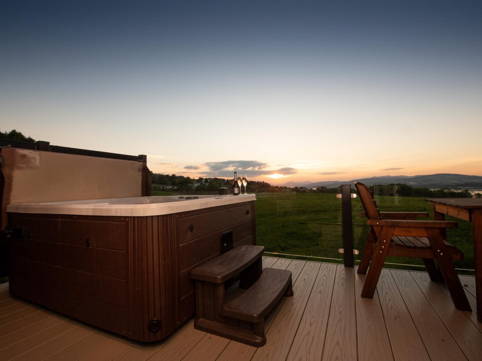 Venturing outside to the fully enclosed balcony with access from the side of the lodges and from the lounge. Relax in the spacious hot tub and admire the amazing views over the Clyde Estuary towards the Argyll Hills and the mighty Ben Lomond and enjoy al fresco dining on the balcony’s seating area with gas BBQ or sit back and enjoy a lazy evening star gazing, perhaps with a nice glass of wine or a good local ale in this Area of Outstanding Natural Beauty. There is ample off-road private parking available next to the lodge.
