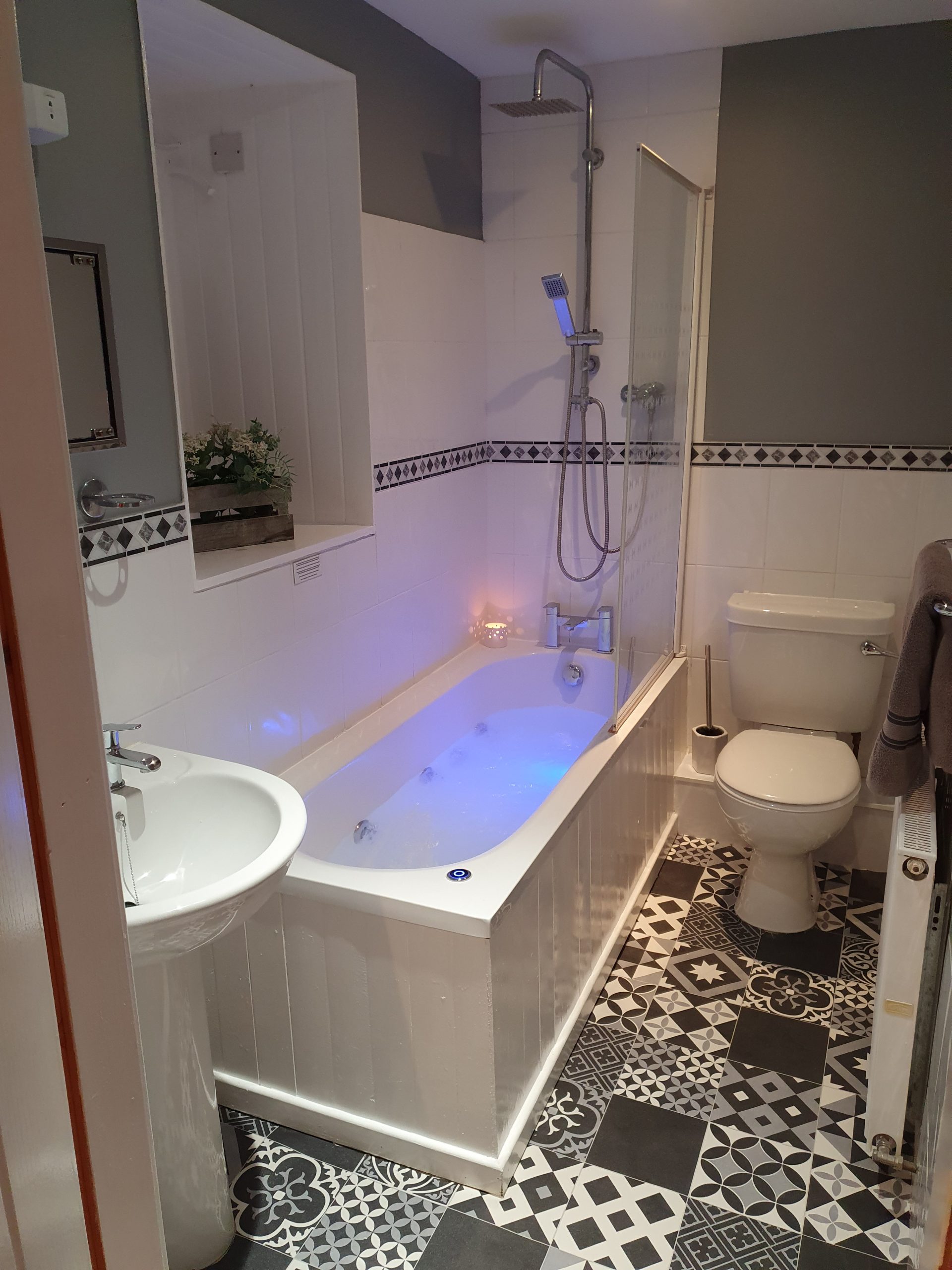 - Upstairs Family bathroom with Large Rainfall Shower Cubicle, Infrared Sauna, W/C and Washbasin
