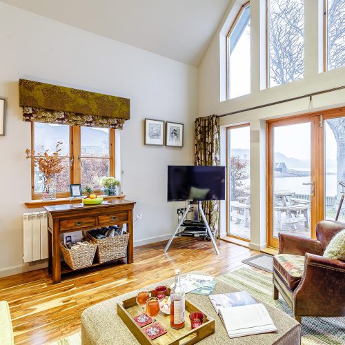 This Luxury rural Lodge retreat for two with relaxing Hot Tub overlooks Loch Ewe and the mountains beyond in the North West Highlands. An idyllic refuge for romantics or those looking for creative inspiration. Perfect base to enjoy walking, cycling, fishing, golf and water sports, with canoeing and kayaking available. Wildlife boat trips are available from Inverewe and Gairloch.