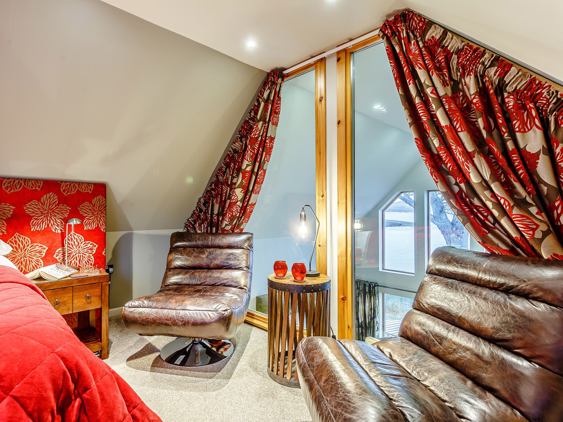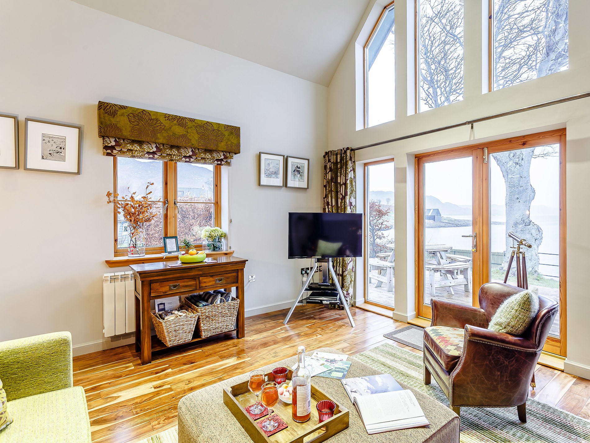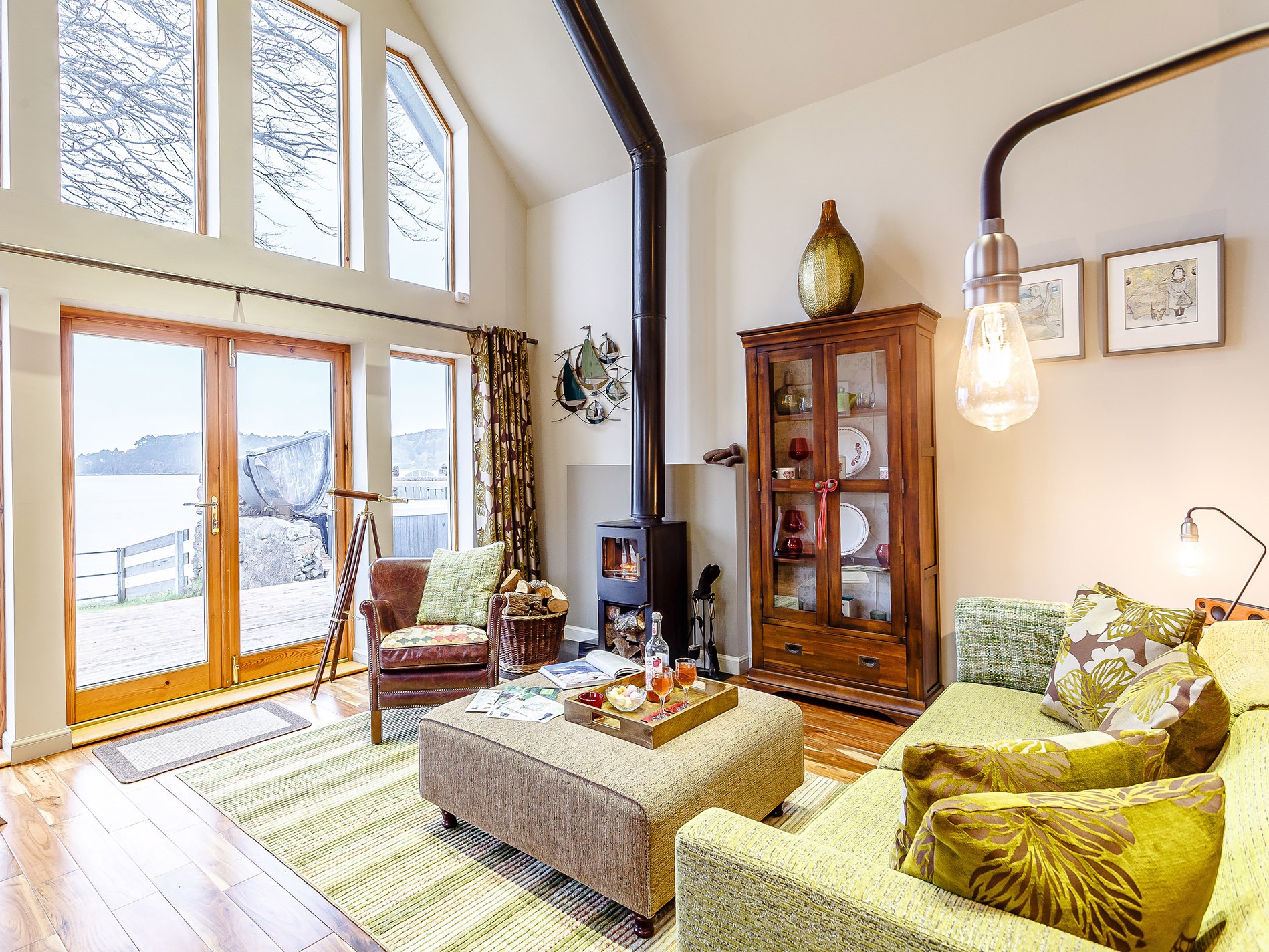 This Luxury rural Lodge retreat for two with relaxing Hot Tub overlooks Loch Ewe and the mountains beyond in the North West Highlands. An idyllic refuge for romantics or those looking for creative inspiration. Perfect base to enjoy walking, cycling, fishing, golf and water sports, with canoeing and kayaking available. Wildlife boat trips are available from Inverewe and Gairloch.